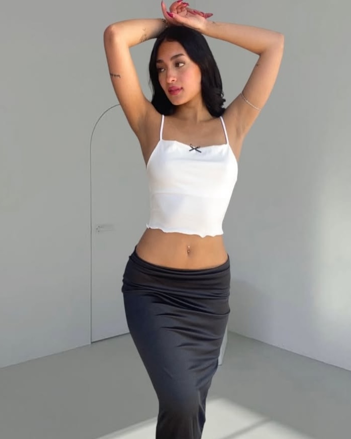 - El largo de la pollera tomado desde tu cintura (o desde donde la vayas a usar) hasta donde quieras que llegue